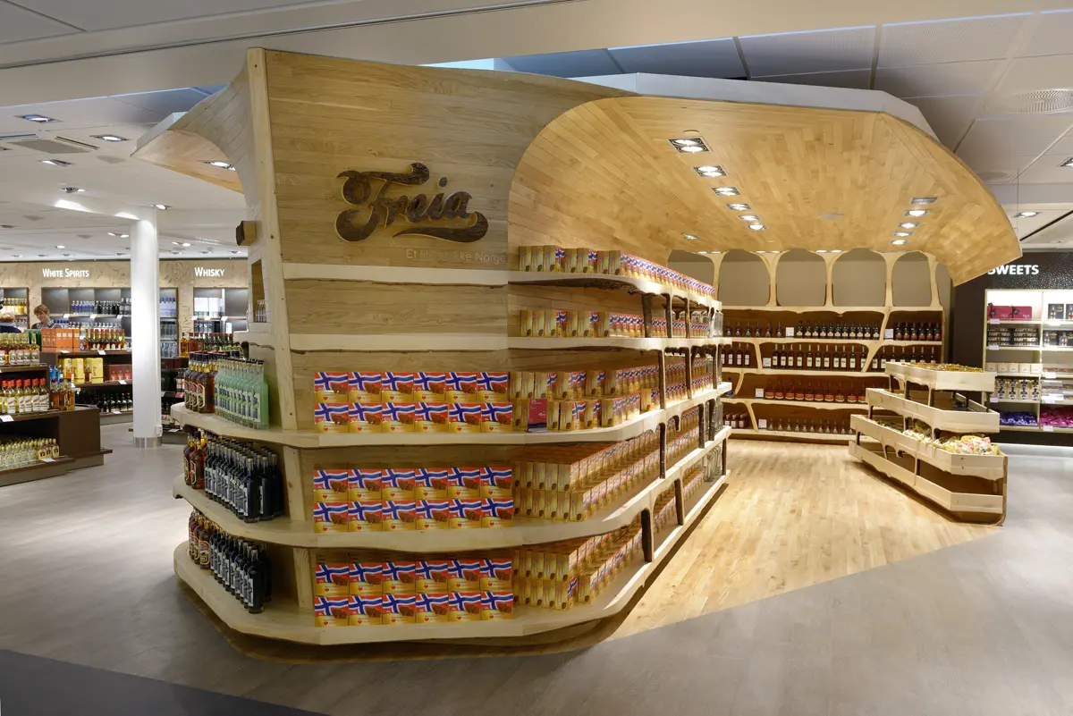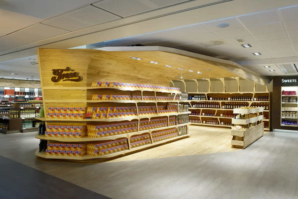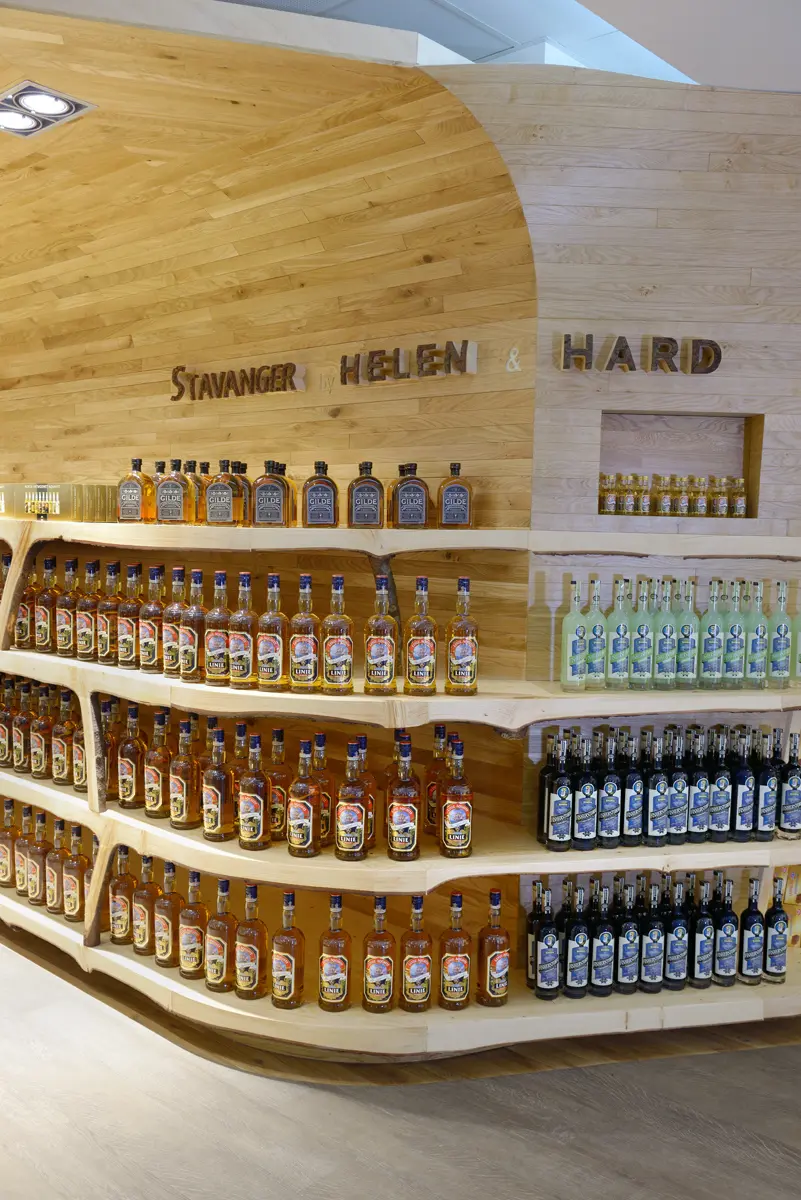 In Zusammenarbeit mit Helen & Hard Architekten entwickelte von bergh ein beeindruckendes Regional-Konzept: Ein stilisiertes Wikingerschiff, gefertigt ausschließlich aus lokal gewonnenem Holz, das regionale Produkte präsentiert. Jeder Baum wurde von uns persönlich in den umliegenden Wäldern ausgewählt und verarbeitet. So entstand ein einzigartiges Möbelstück, das Nachhaltigkeit, kulturelles Erbe und meisterhafte Handwerkskunst perfekt vereint.