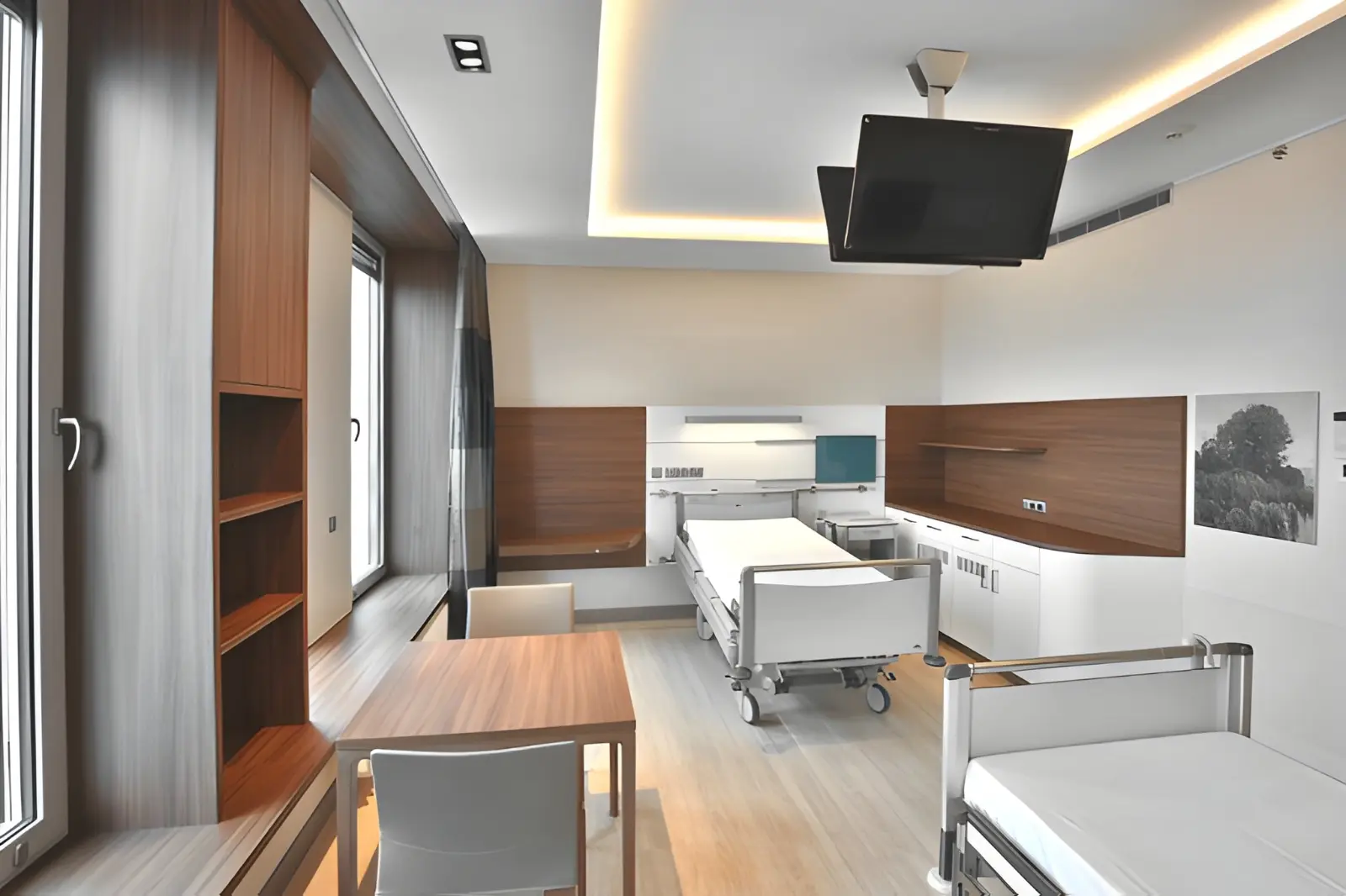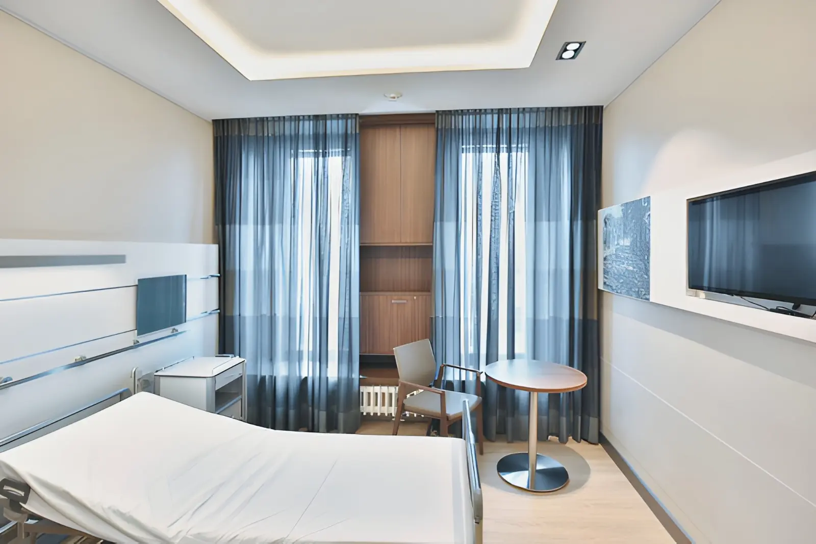 In enger Partnerschaft mit der Charité wurden sterile Patientenzimmer durch eine warme, wohnliche Umgebung ersetzt. Elegante Holzoberflächen, helle Möbel und indirekte Beleuchtung, ergänzt durch integrierte Stauräume und einen von Hotels inspirierten Sanitärbereich, schaffen eine einladende Atmosphäre, die die Genesung der Patienten unterstützt.