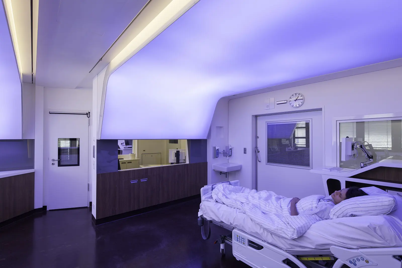 In den Pilot-Intensivpflegezimmern der Charité Berlin entwickelte von bergh eine wegweisende Designlösung. Unser Beitrag umfasst maßgefertigte, flexibel arrangierbare Einrichtungselemente aus innovativen Materialien. Das Gestaltungskonzept setzt auf organische Formen, sanfte Lichtführung und integrierte, unsichtbare Technologie – und schafft so eine beruhigende Atmosphäre, die die Genesung der Patienten unterstützt.