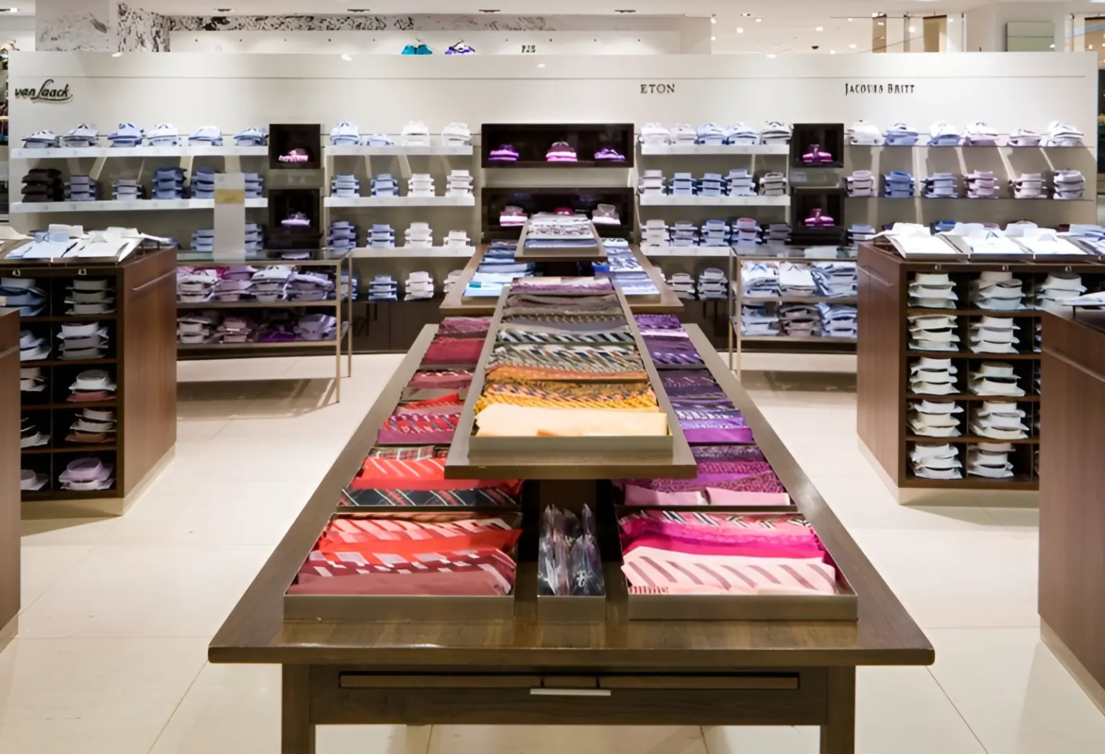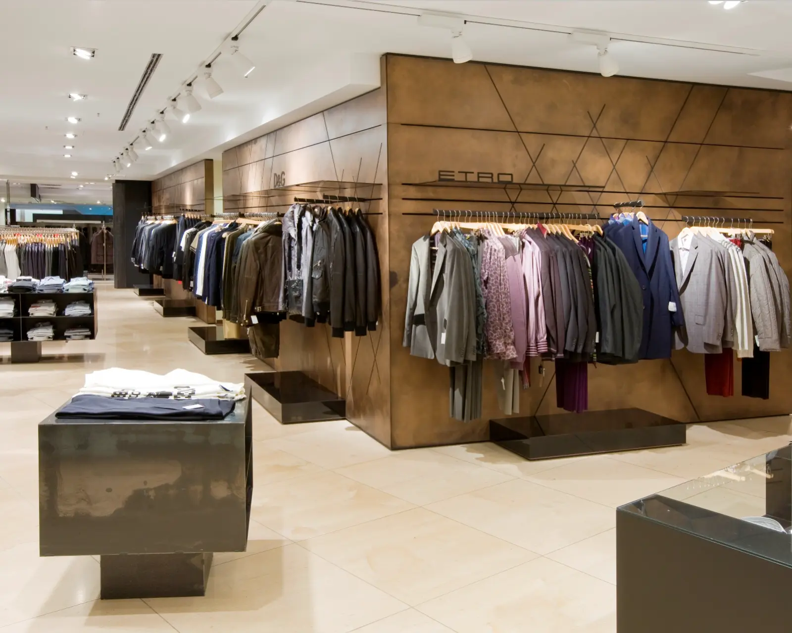 At Stuttgart’s Breuninger, von bergh expertly revamped the men’s department during ongoing operations using premium materials—concrete, dark wood, copper, and dark glass. The transformation elevates top brands such as Dolce & Gabbana, Zegna, Armani, and Gucci, setting new benchmarks in retail design and efficiency.